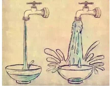 第一題:漫畫題,兩個水龍頭下各有一個碗,水流速度慢的碗將將乘滿,速度快的水花四溢,自擬標(biāo)題,并談看法。